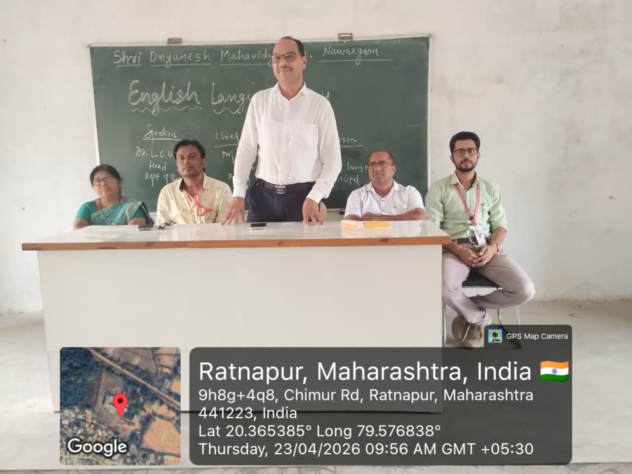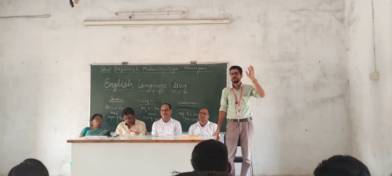 On the occasion of William Shakespeare’s birth as well as death anniversary, department of English organised the programme to pay the homage to the greatest writer in the world. The celebration of English Language Day was organised with great enthusiasm in the institution.The program was chaired by Dr. Lanje, while the Principal Speaker, Dr. Ujede (Head of the Department of English), delivered an insightful address on the importance of the English language. Ms Geeta Sonwane Madam also shared her valuable thoughts, enriching the session. The esteemed guest, Dr. A. T. Mungmode, inspired the audience with his encouraging words. The program concluded successfully, leaving the participants motivated to enhance their English language skills. The program was conducted and vote of thanks was proposed by Prof D R Kshirsagar.