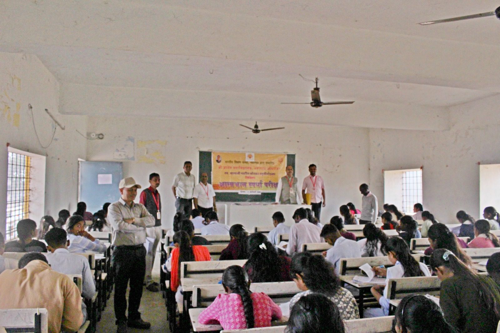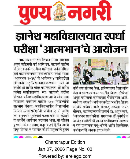 On the occasion of the Amrit Mahotsav year of Bharatiya Shikshan Sanstha, Navargaon, and the Shatakottar Rajat Mahotsav birth anniversary of Late Balaji Patil Borker, the competitive examination “Atmabhan 2026” was organized for all college students, as conducted every year, at Shri Dnyanesh Mahavidyalaya.