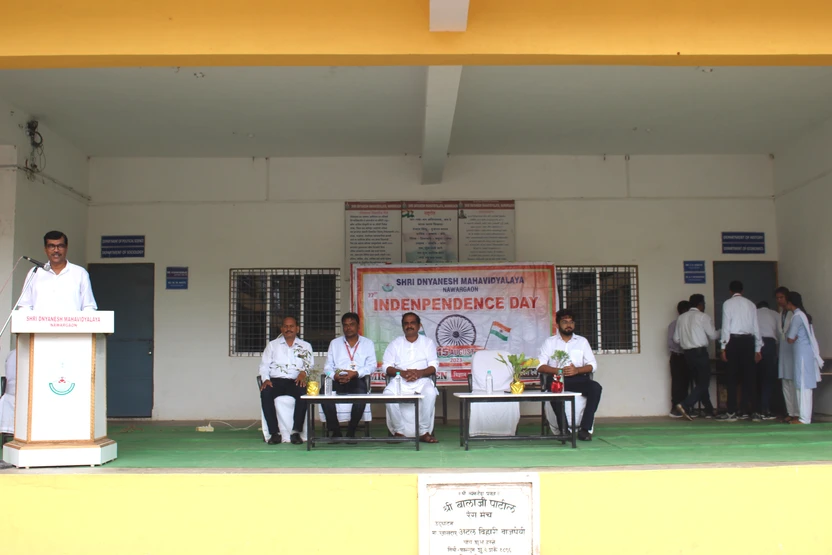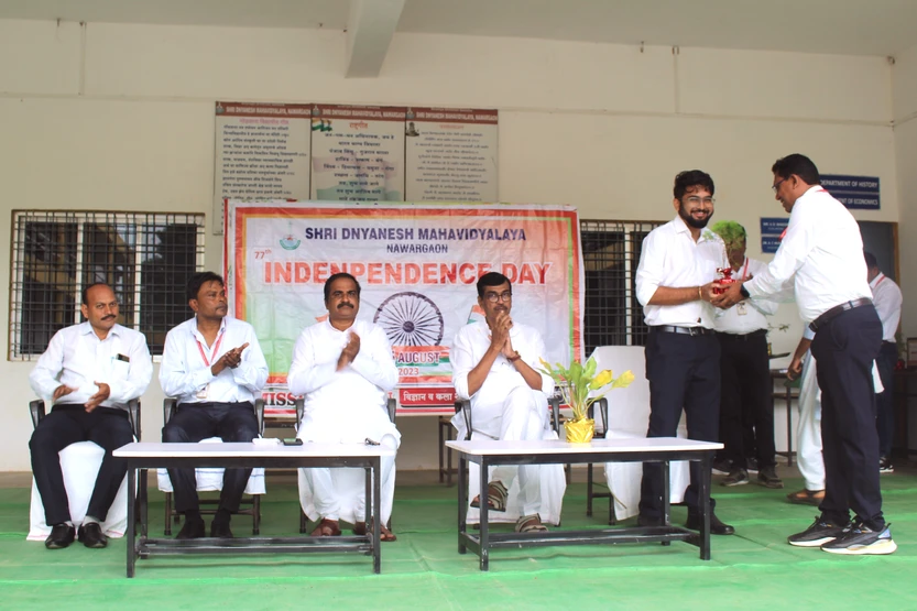 Independence Day was celebrated in the institution on 15th August 2024 with patriotic zeal and enthusiasm. „Flag-hosting‟ was taken place by the hands of the Secretary of Bhartiya Shikshan Sanstha, Nawargaon Shri Sadanand Borkar followed by a collectively chorused national anthem. Principal Dr. Ujede sir made the introductory remarks. Some students delivered speeches on the given topic “The Role of Youth in Environment Preservation.” On this occasion, the Academic Excellence Awards as well as Sports excellent awards were also distributed to the meritorious/ sportsperson students at the hands of the guests.
