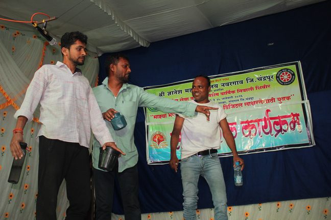 The OD also gave a review of the work done during the day. During this, the group leader and OD were selected democratically to organize the second day’s program. Later, everyone enjoyed a delicious meal together. After the meal, a cultural program that was everyone’s favourite was organized between 9 and 10. Every group participated in this. The people of Nandgaon village were in a big crowd for this program. After this, the day’s program was concluded with prayers and immersion of lamps.