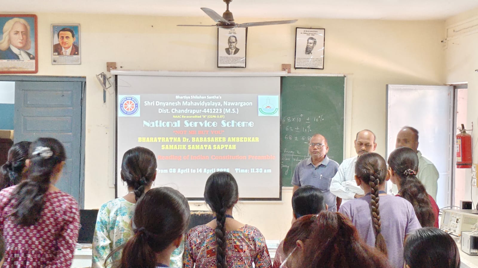 The Bharatratna Dr. Babasaheb Ambedkar Samajik Samata Saptah was celebrated with great enthusiasm and social awareness at Shri Dnyanesh Mahavidyalaya, Nawargaon to promote the ideals of equality, justice, and fraternity as envisioned by Dr. B. R. Ambedkar, the chief architect of the Indian Constitution.