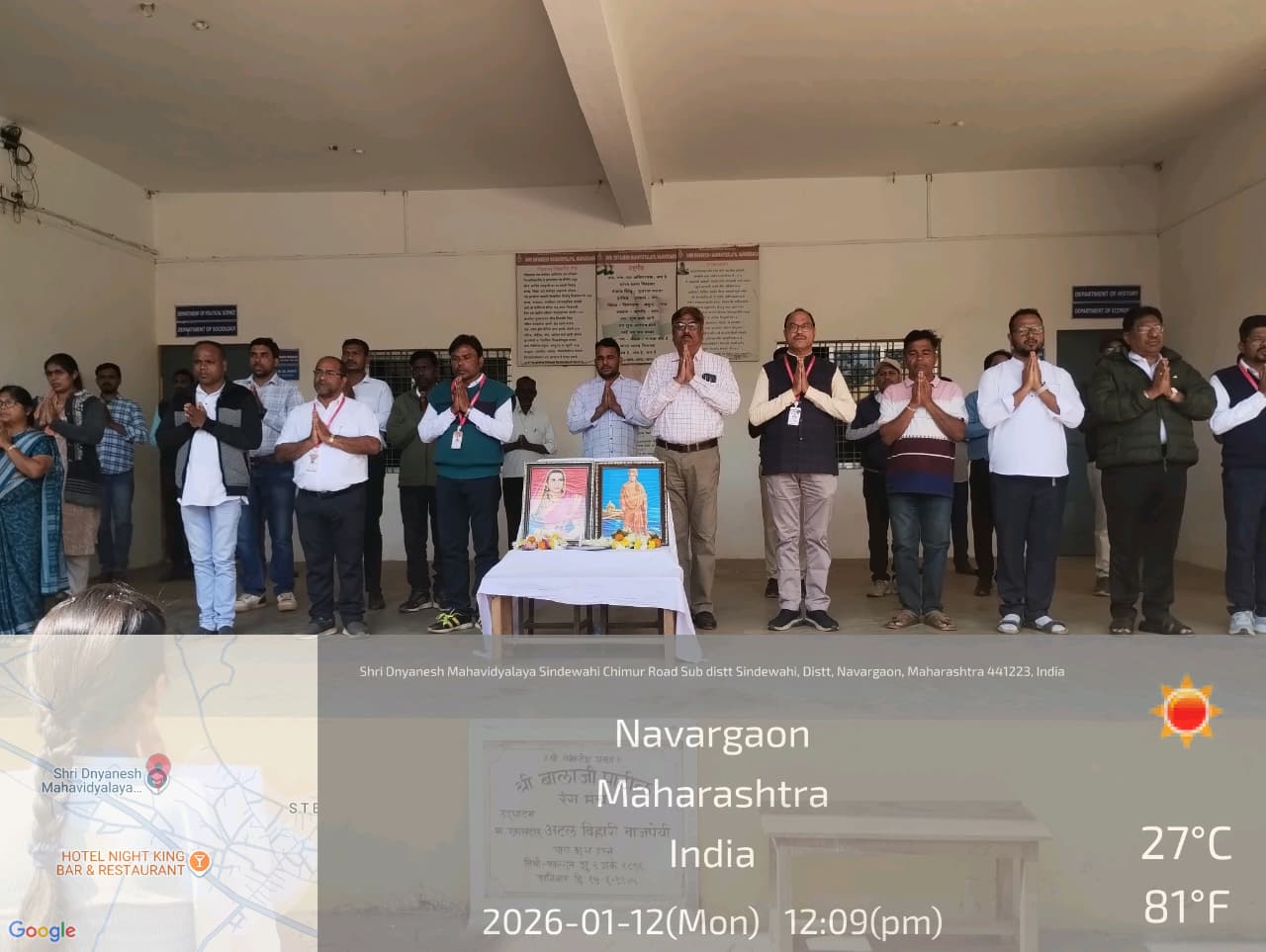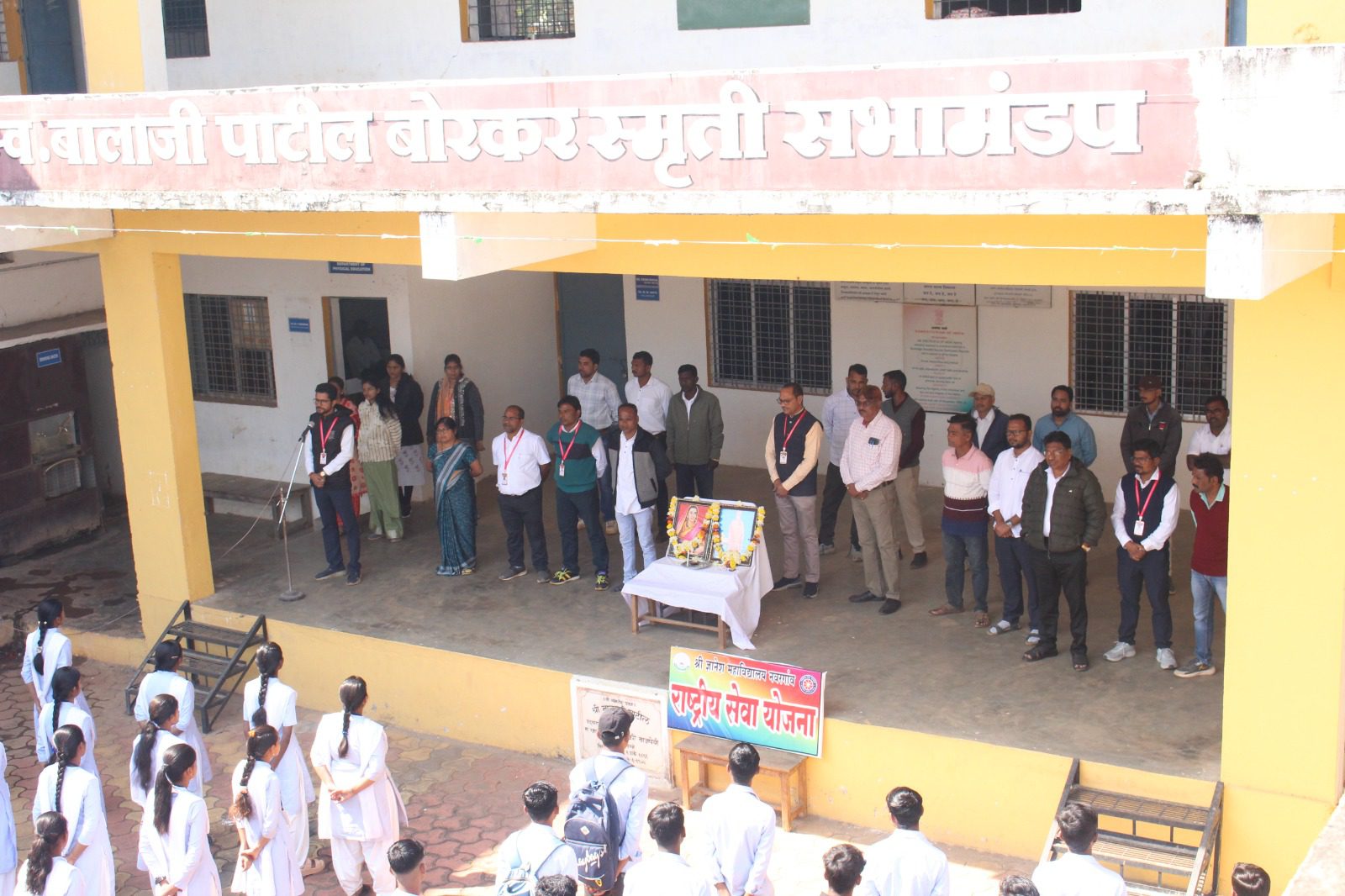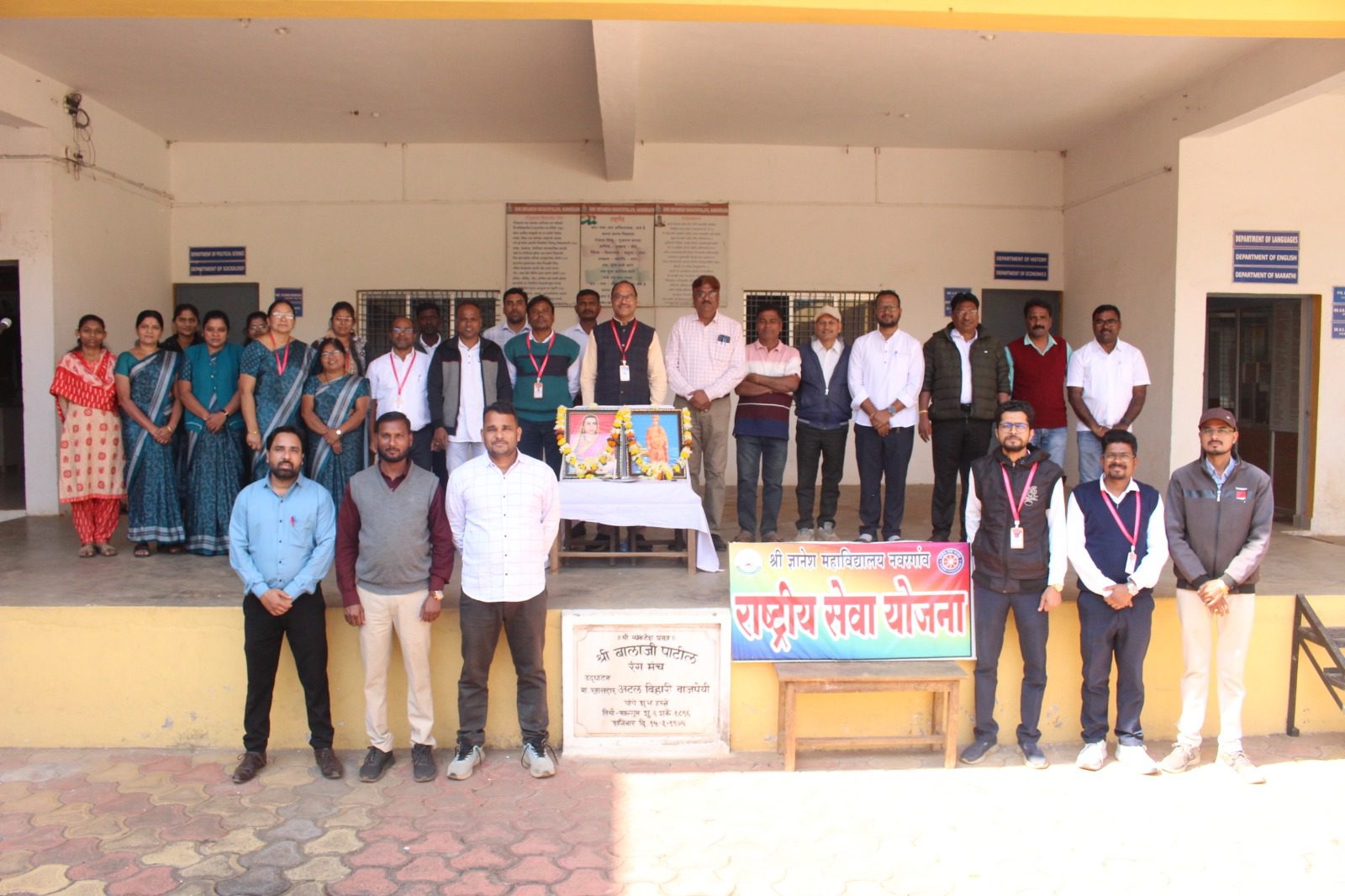Rajmata Jijau Jayanti and Swami Vivekananda Jayanti were celebrated with great enthusiasm at the College premises of Shri Dnyanesh Mahavidyalaya, Nawargaon on 12.01.2026 on 12 pm. The programme was organized by the NSS unit of college with the aim of inspiring students through the lives and teachings of two great personalities of India.