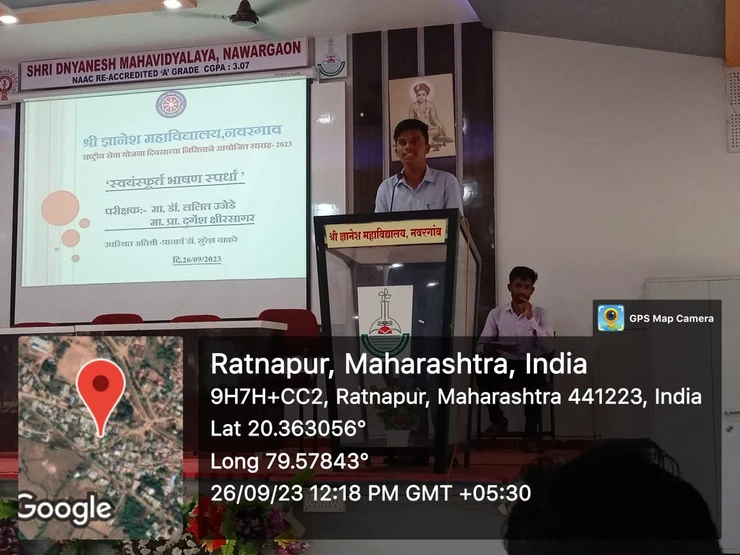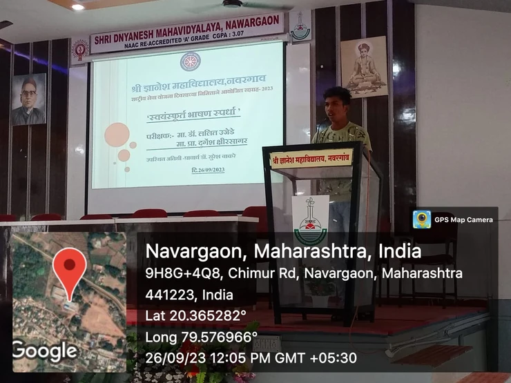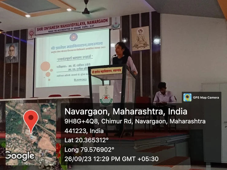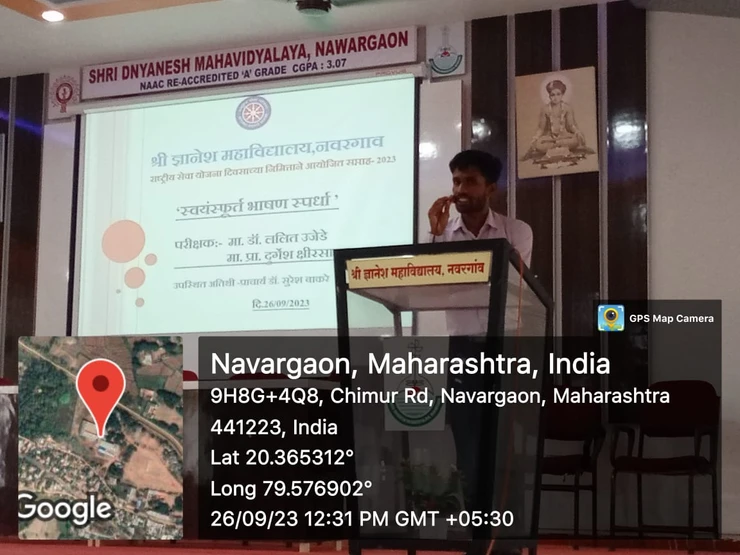 The third activity, the Spontaneous speech competition was organized on the third day, Tuesday 26th September 2023 from morning 11.30 am to 1.00 pm of the week 2023 on the occasion of NSS Day on behalf of National Service Scheme Department of Shri Dnyanesh College Nawargaon.